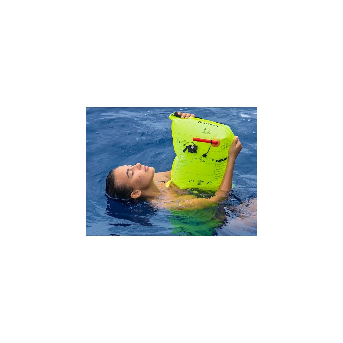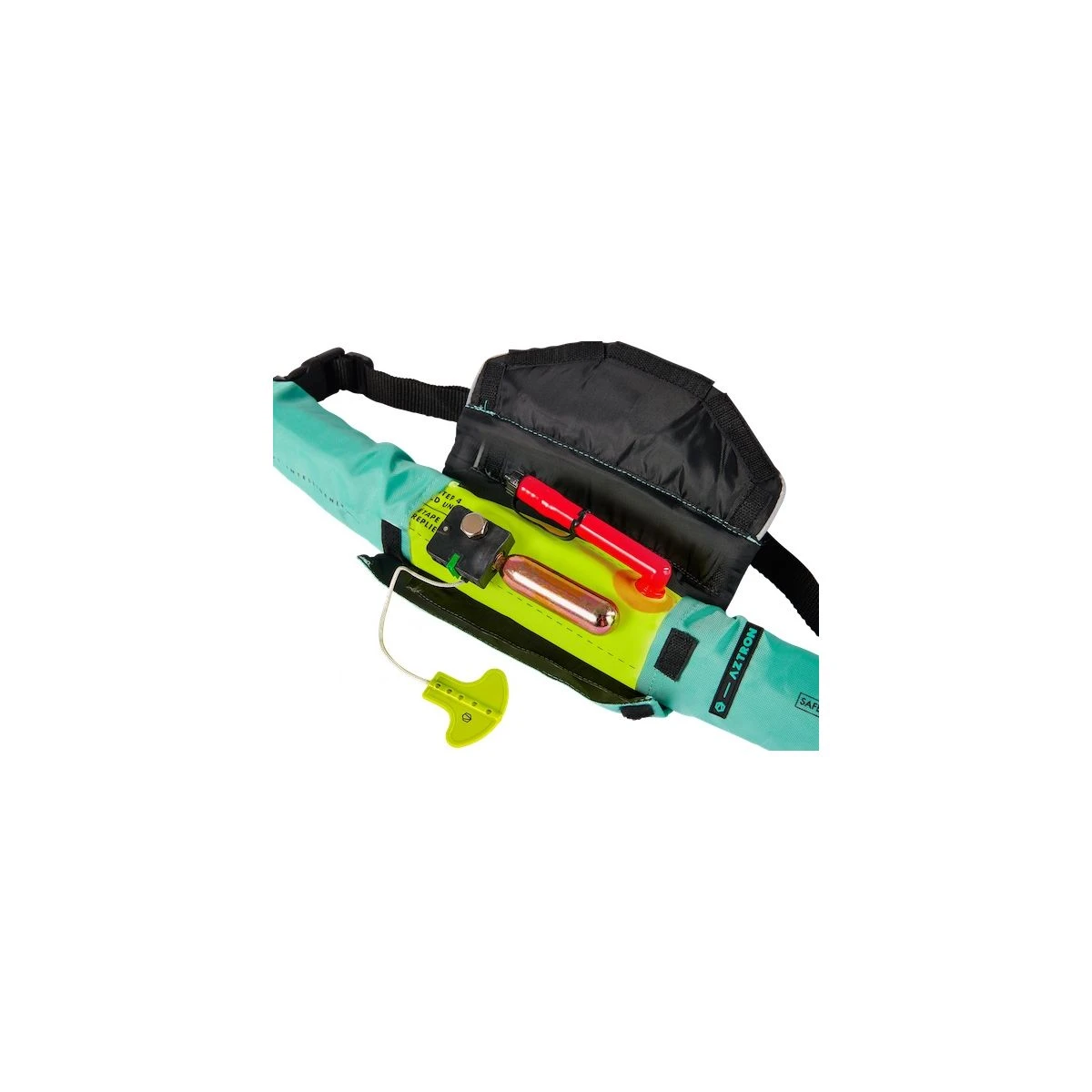 Dette er en sammenfoldet svømmevest fra Aztron, som er godkendt som svømmevest. Den er ideel til den aktive vandsportsudøver og er særdeles perfekt til SUP-brug, da den ikke fylder noget, men stadig holder dig sikker på vandet. På bæltet sidder der en CO2 patron, der puster vesten op når du trækker i den orange snor. ![]()