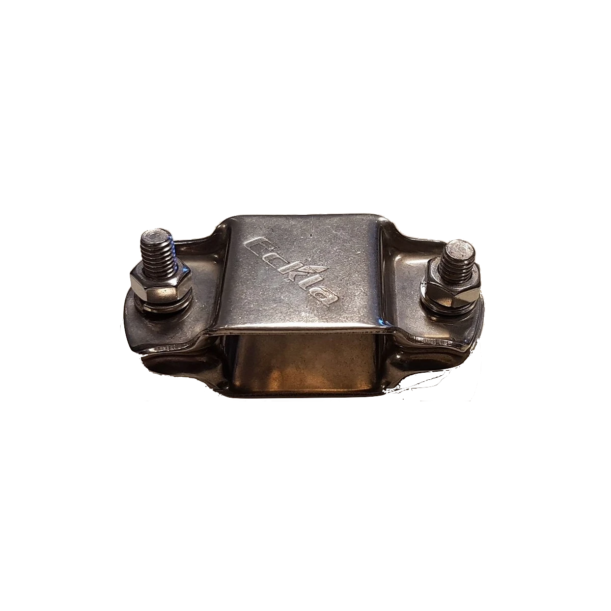 Beslag i rustfrit stål med 2 bolte m/låseskive og møtrik, der passer til alle Ecklas tagholdere til montering på firkantede tagstænger. Følger normalt med tagholderne, men kan købes i løs vægt, hvis du skulle miste et beslag.
