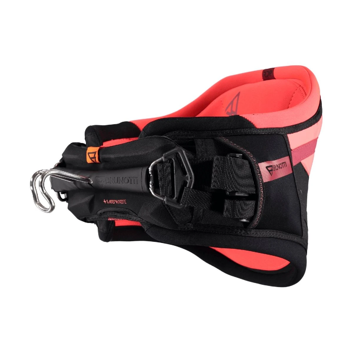 Velsiddende hoftetrapez med for formet lænde støtte og nyudviklet trapez krog. Trapezkrogen er helt nyudviklet og langt væk fra den traditionelle krog. Den er produceret i støbt aluminium, og konstrueret så den fordeler trykket fra centret af trapezen til siderne, og designet så den passer perfekt på kroppen, med mindst mulig luft mellem krog og krop.