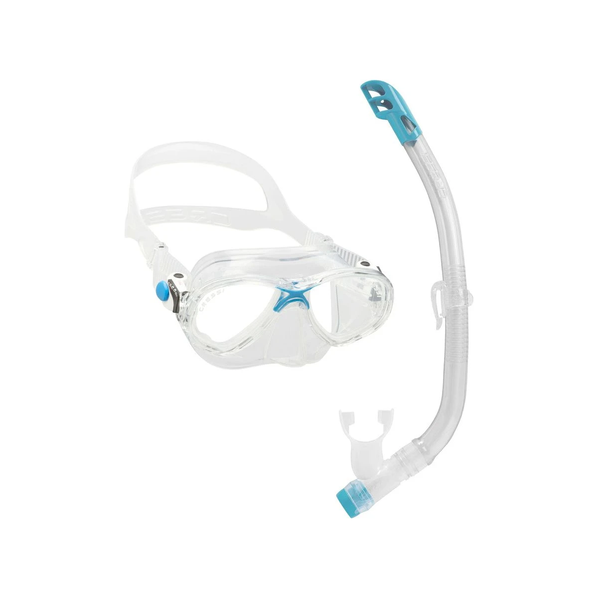 Cressi Marea Junior Dykkermaske/snorkelsæt til børn fra 7 til 13 år. Masken har en God pasform, med virkelig blødt silikone. Behagelig snorkel til junior med bølgebryder og ventil.
