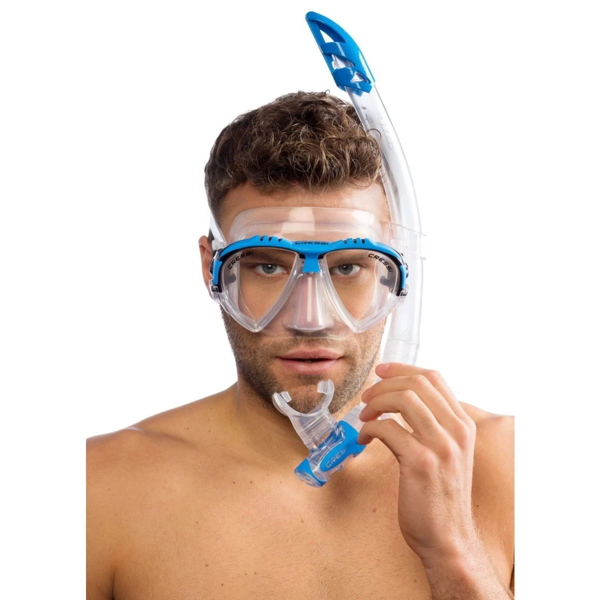 Cressi Matrix + Gamma Dykkermaske/snorkelsættet er det luksuriøse snorkel sæt til manden eller damer med et bredere ansigt. Virkelig det bedste snorkel sæt i Cressis linie. Ridsefri, anti uv behandling, og anti dug behandlet maske, snorkel med lukke ventil i toppen og smart ventil i bunden sikrer at alle dyk bliver uden bekymringer for udstyret. Den sorte Matrix udgave har udviklet sig til at blive et af de bedste snorkelsæt til prisen indenfor undervandsjagt.