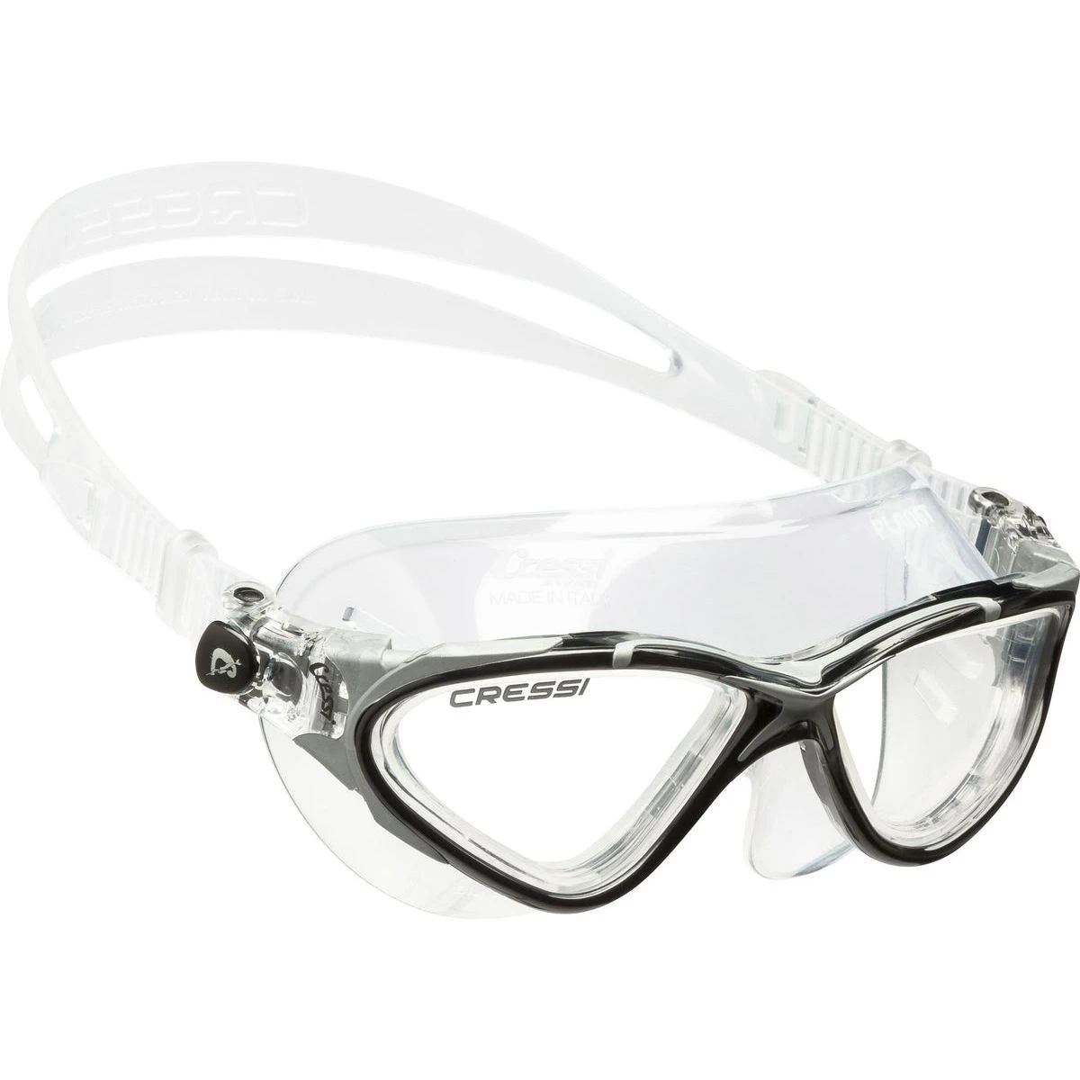 Cressi Planet svømmemasken er en super god svømmemaske til open water, triathlon og svømning på lange distancer hvor masken skal sidde ordentligt og tæt uden at irritere svømmeren. Planet er en lidt bredere udgave af den klassiske og kendte Cobra svømmemaske. Masken er produceret i den bedste kvalitet af silikone og mange open water svømmere vælger den med “smoked lenses” 100% Anti UV 100% anti rids Anti dug behandlet