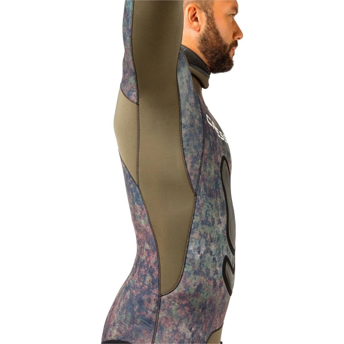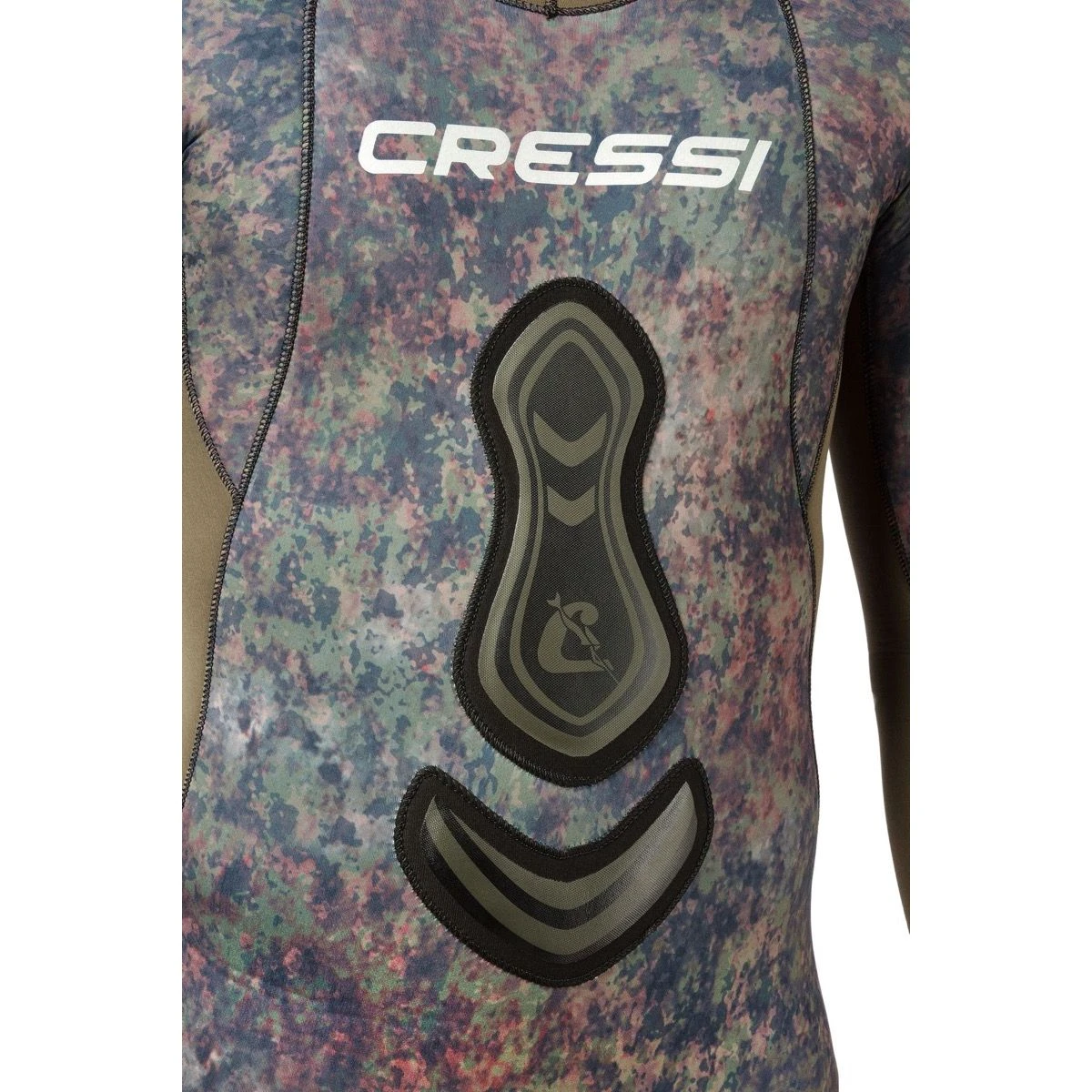 En helt revolutionerende teknisk topmodel. Topdragten i Cressi’s UV Jagt serie, med sort og grå camouflage farver, Seppia er karekteriseret ved en lang række eksternt bløde og behagelige neopren områder, som internt har åbne celler, men som mellem to lag neopren har et lag tekstil der giver styrke og struktur og gør dragten extra holdbar. Cressi kalder løsningen Two-Ply neopren og bruger neoprenen flere steder i den nye dragt.
