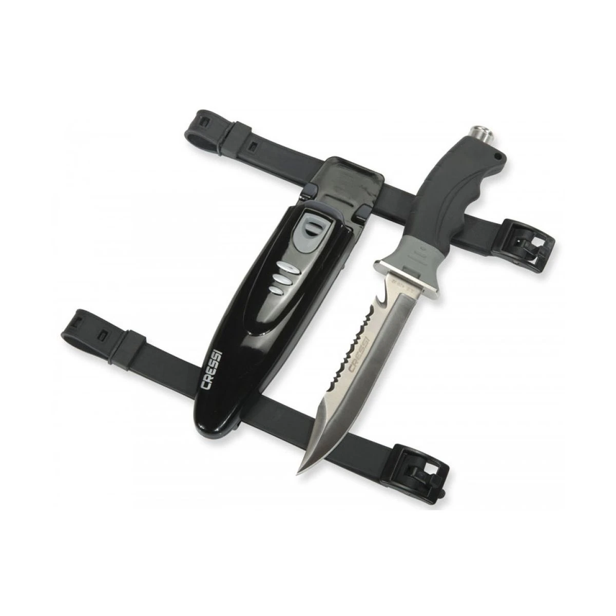 Cressi Borg kniv er en moderne og stor kniv med et holdbart japansk stål blad. Leveres med stropper til benet. Virkelig en skarp kniv til at skære liner med.