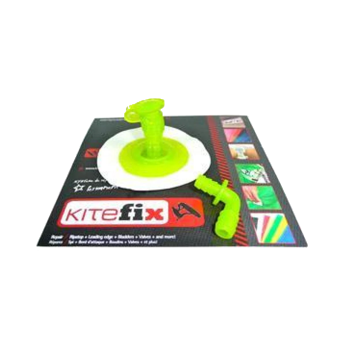Den gamle tages af ved at opløse limen i KOGENDE vand, ca 3-5minutter, pas på med at for meget af bæren kommer ned i vandet, den kan klistre mod hinanden. Gør området rent med den medfølgende sprit, og klister den nye Kitefix ventil over det gamle hul.
