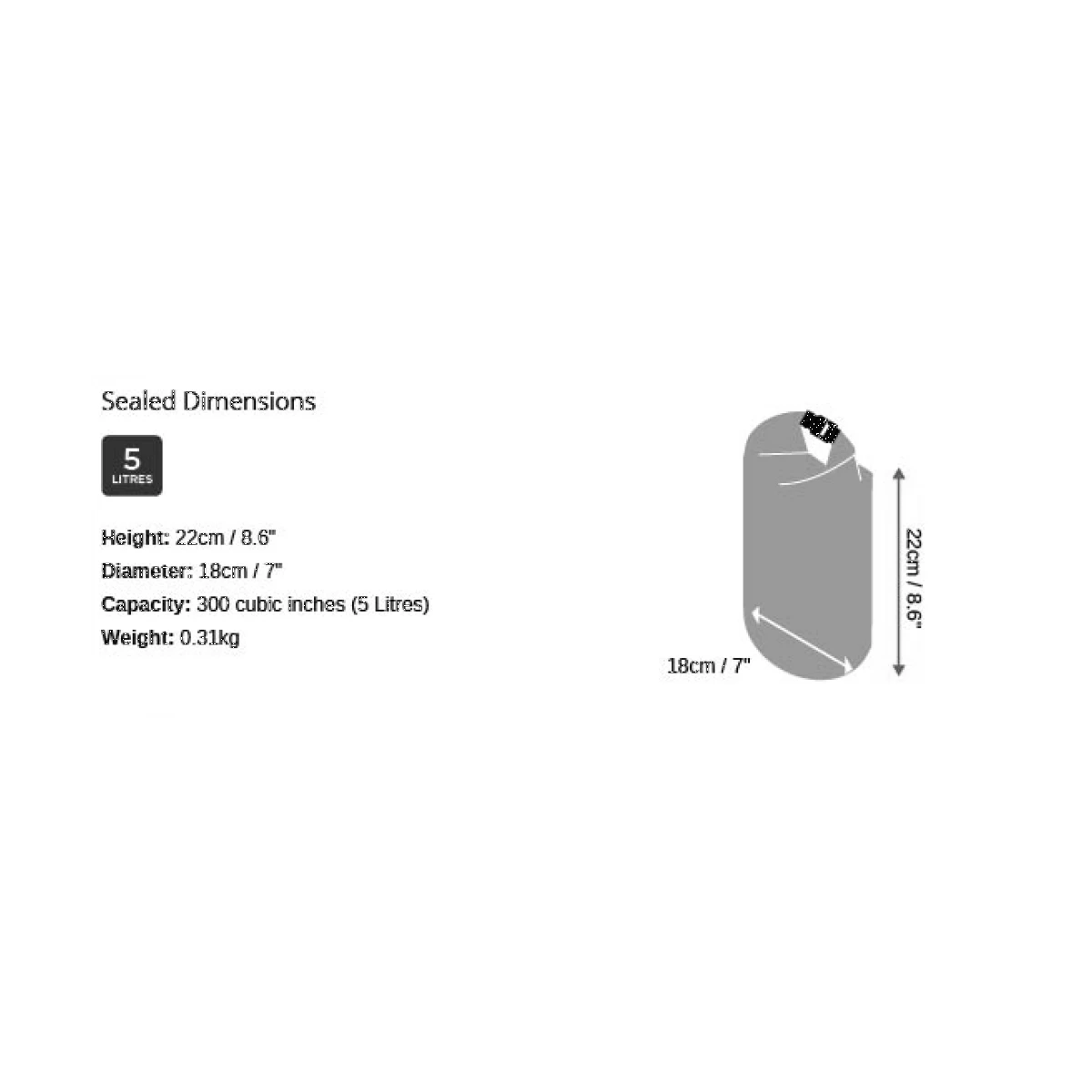 100% vandtæt 5 liters taske du kan stole på. Tasken er produceret i en kraftig PVC coating der gør den kan tåle en masse tæsk. Når dagen er omme og din kajak tur har været lang kan 5 liters baggen benyttes som en pude.