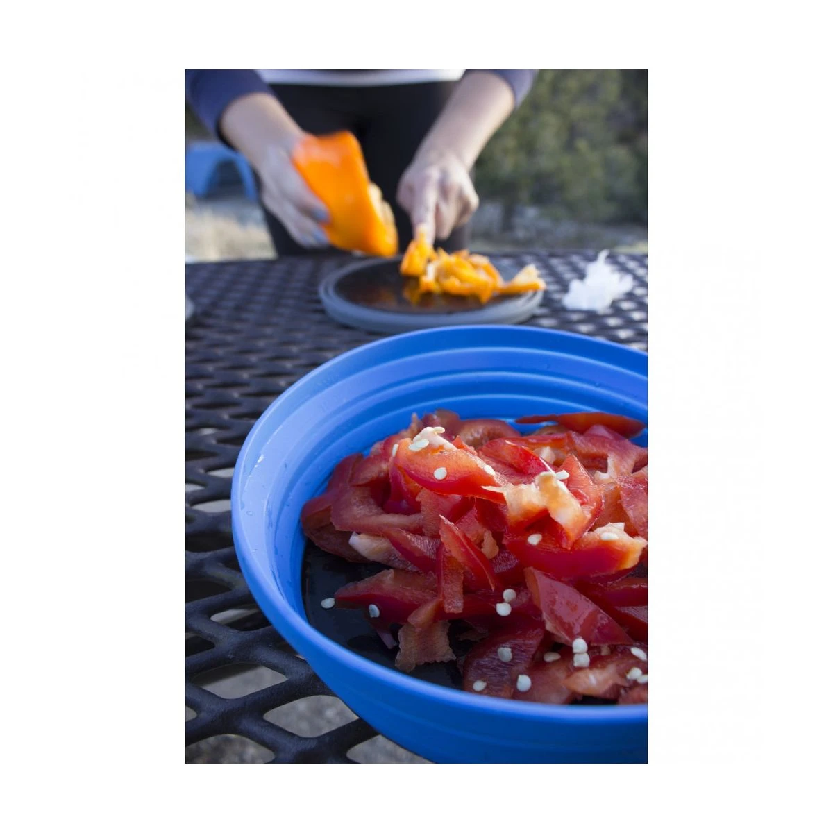 God tallerken i fleksibelt silikone med en nylon bund som kan bruges som skærebræt når man vender den om. Designet til at bruges med de andre produkter i X-Serien fra Sea to Summit for det ultimative Camping sæt.